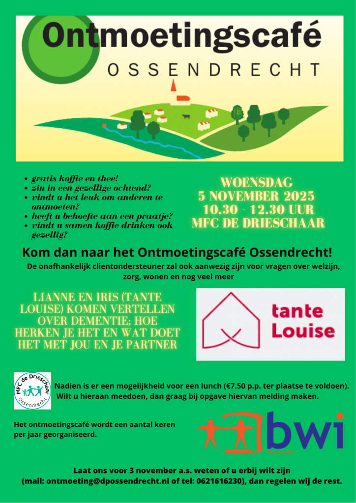 Het laatste Ontmoetingscafé van 2025 komt eraan… 7 oktober 2025Astrid Goris en wel op woensdagochtend 5 november a.s. U komt toch ook?